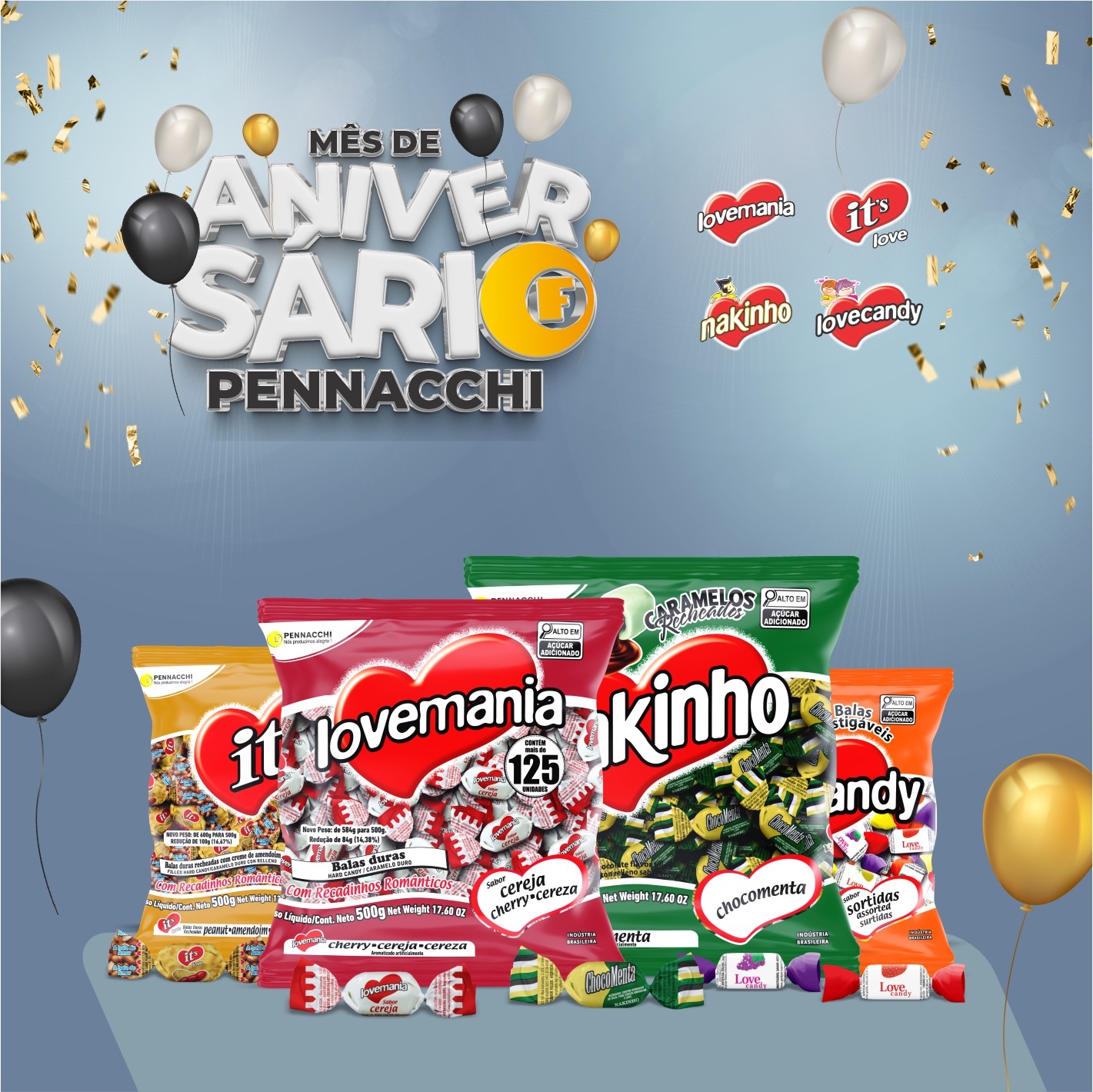 Deliciosas balas e caramelos de gramaturas e sabores diversos. Quatro marcas exclusivas para atender você. Nós produzimos e distribuímos doces momentos de alegria. A Pennacchi Indústria, uma das empresas do grupo Pennacchi, nasceu em meados dos anos de 1970 quando após a família se firmar n...