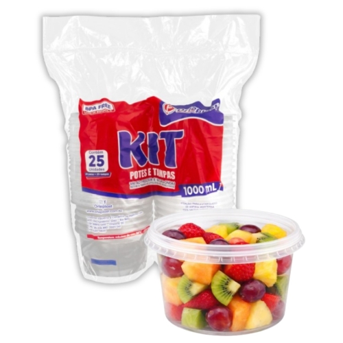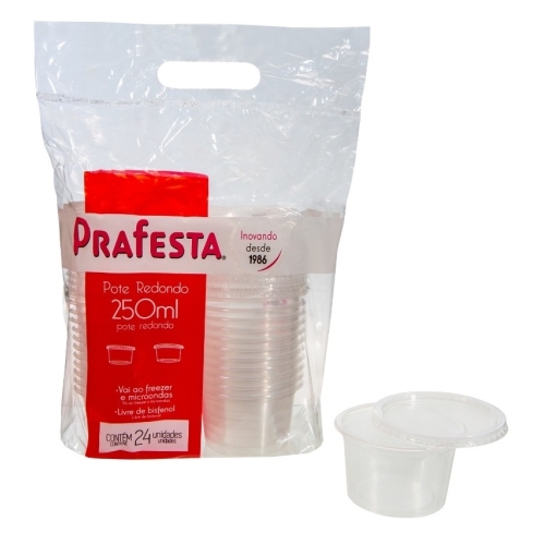 Pote Redondo 1000ml Pp Com Tampa Prafesta 24un